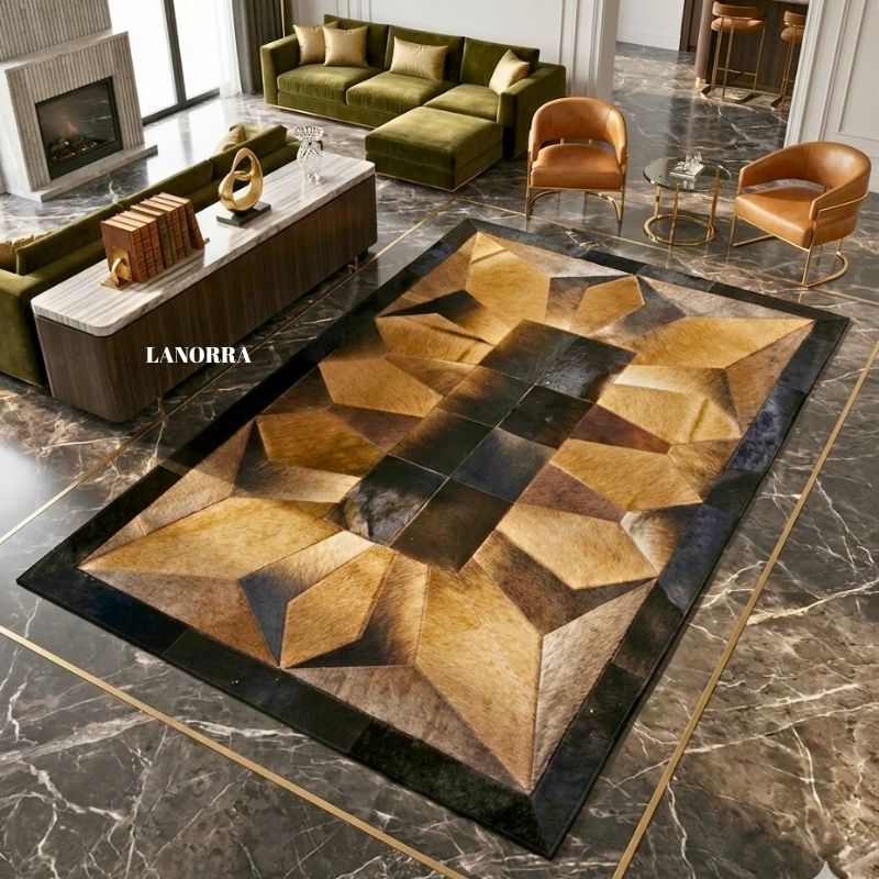 Doğal dana derilerinin özenle bir araya getirilmesiyle oluşturulan patchwork halılar, modern ve lüks dekorasyonun en dikkat çekici parçalarından biridir. Her biri el işçiliği ile hazırlanır ve tamamen benzersiz bir görünüme sahiptir.