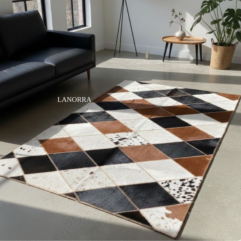 Puantiyeli Dana Derisi Patchwork Halı LNRPW000050