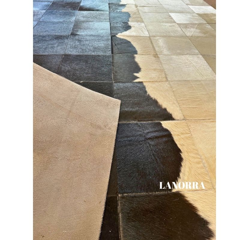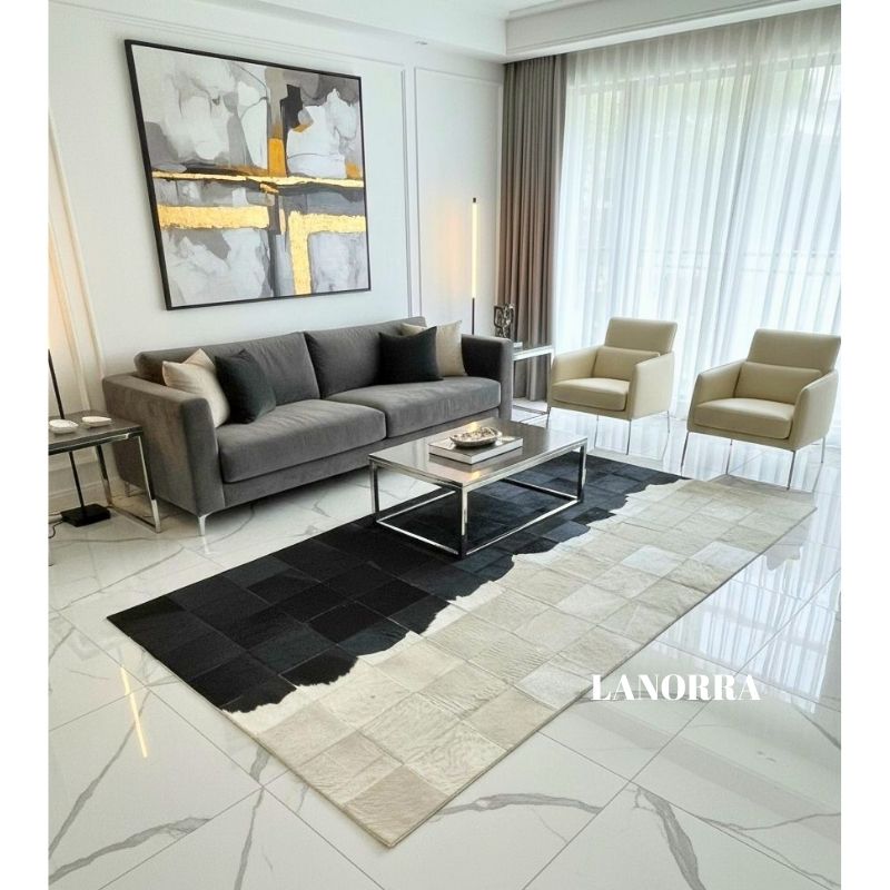 Ana Sayfa Deri Halılar Patchwork Deri Halılar 1.3 Siyah Beyaz Hakiki Dana Postu Patchwork Halı LNRDH00001276
