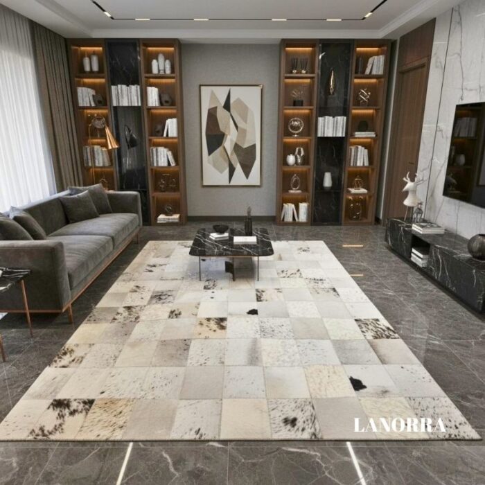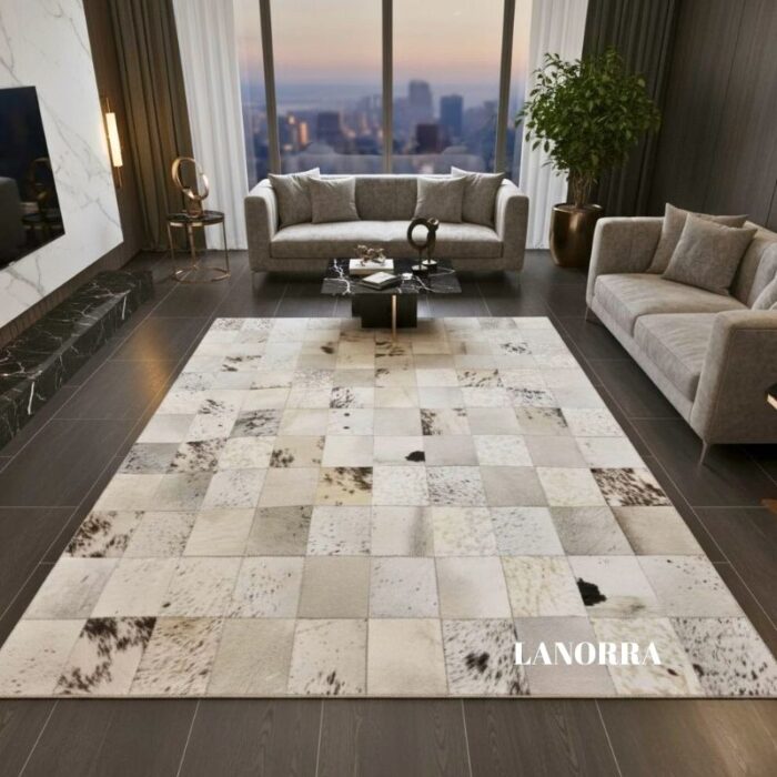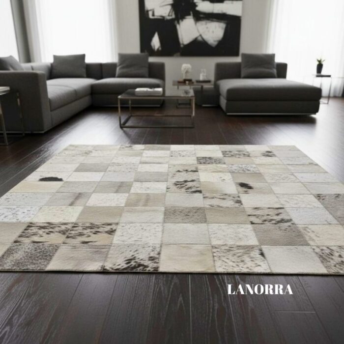Siyah-Beyaz Renk Dana Derisi Patchwork Halı LNRPW00006