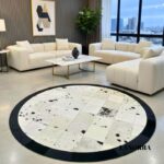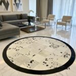 Siyah-Beyaz Renk Yuvarlak Dana Derisi Patchwork Halı LNRYH000027