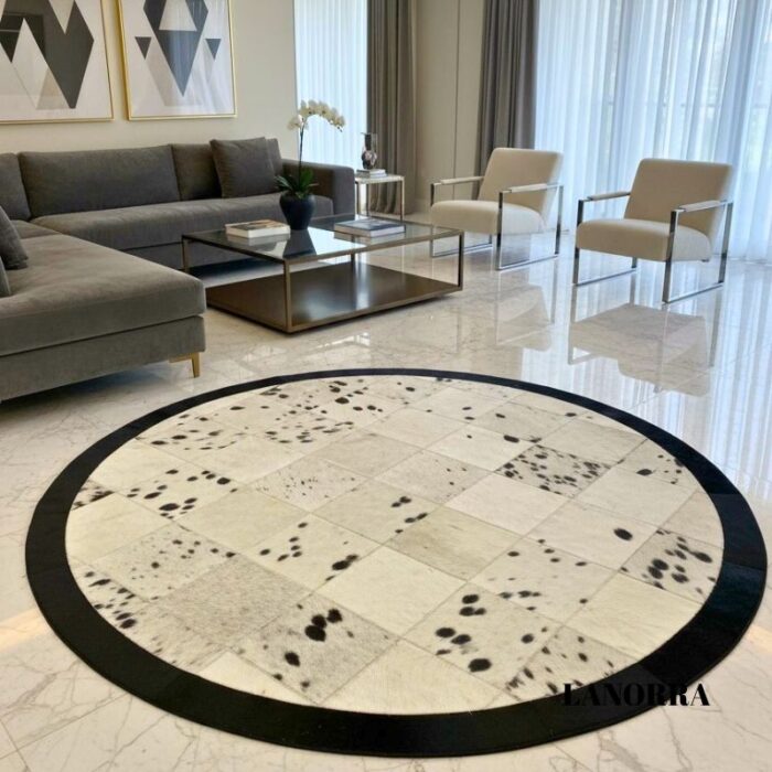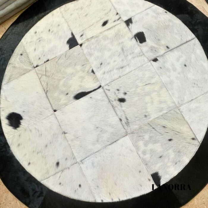 Puantiyeli Siyah-Beyaz Yuvarlak Dana Derisi Patchwork Halı LNRYH0000217