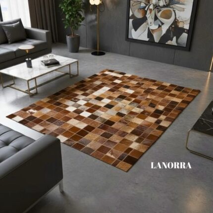 Kahverengi Tonları Dana Derisi Patchwork Halı LNRPW000048