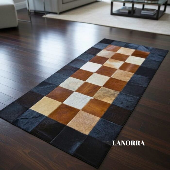 Puantiyeli Dana Derisi Patchwork Halı LNRPW000019
