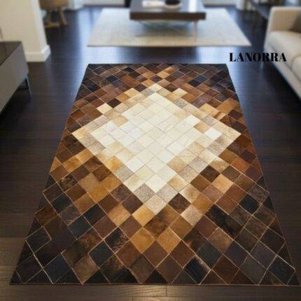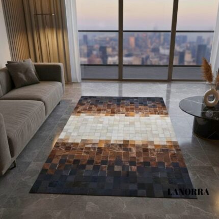 Çok Renkli Dana Postu Patchwork Halı LNRKH001009