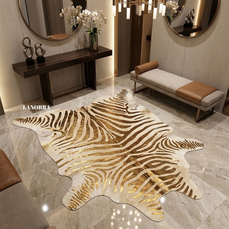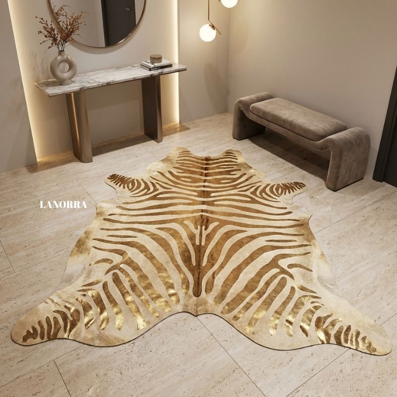 Gold Zebra Baskılı Hakiki Dana Postu 220X200cm LNRDP001439