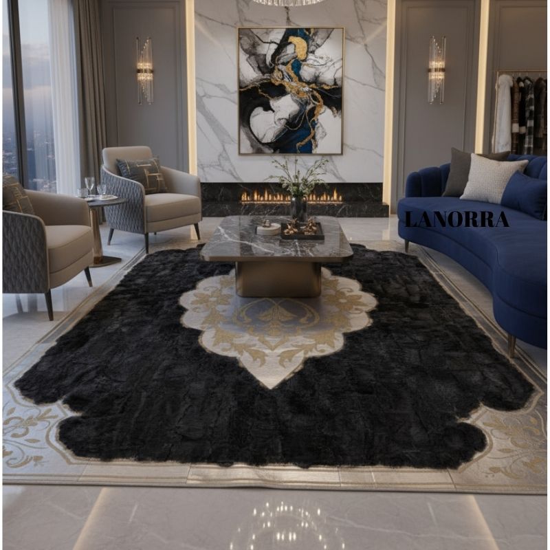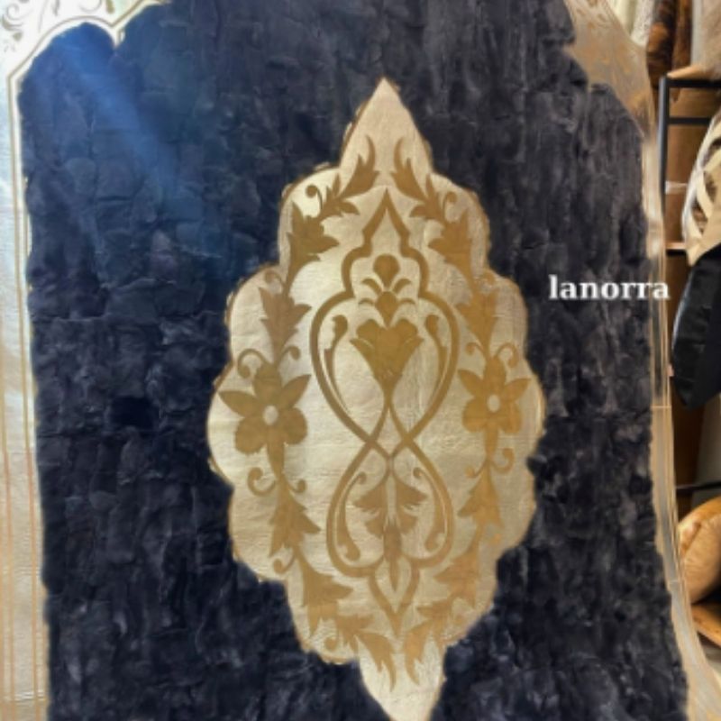 Lüks Antrasit Tavşan Peluş Gold Deri Lazer Kesim Halı LNRKH0000519