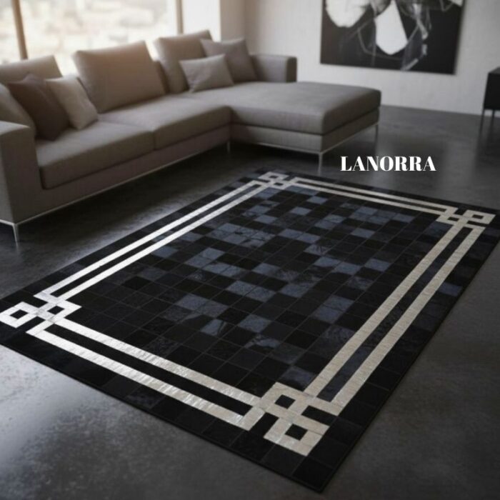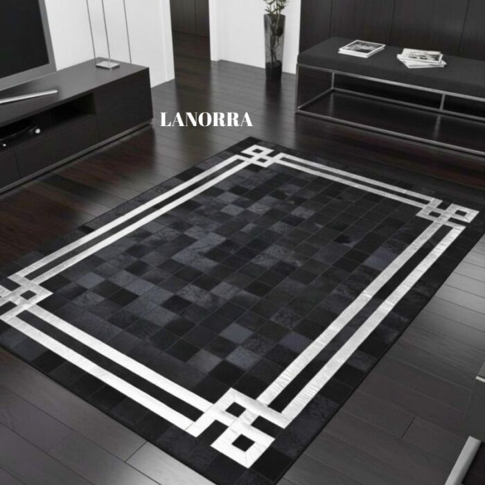 Siyah-Beyaz Renk Dana Derisi Patchwork Halı LNRPW00006
