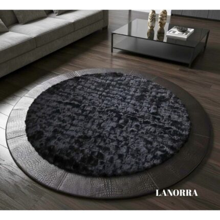 Siyah Bordürlü Siyah Renk Yuvarlak Toskana Kürk Halı LNRYH00004
