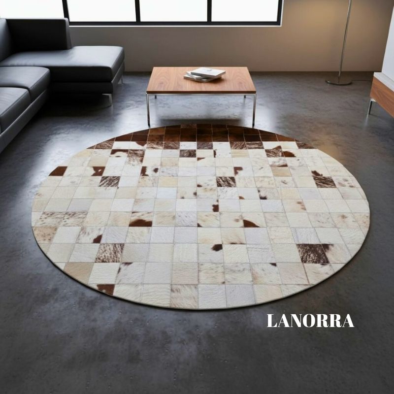 Ana Sayfa Yuvarlak Halılar Yuvarlak Deri Halılar Kahve Beyaz Yuvarlak Dana Derisi Patchwork Halı LNRYH0001022