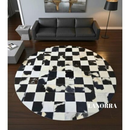 Siyah Beyaz Yuvarlak Dana Derisi Patchwork Halı LNRYH001021 5.400,00 ₺ – 21.600,00 ₺