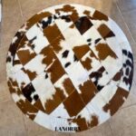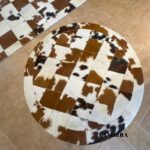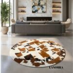 Kahve Beyaz Yuvarlak Hakiki Dana Postu Patchwork Halı LNRYH001336