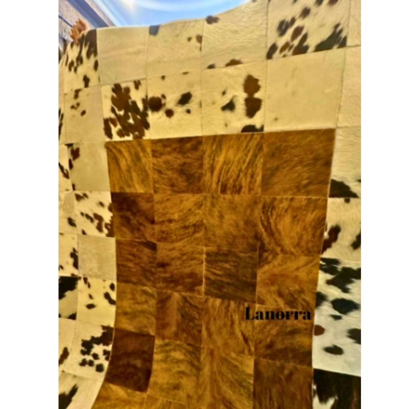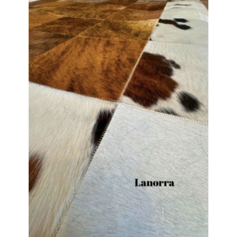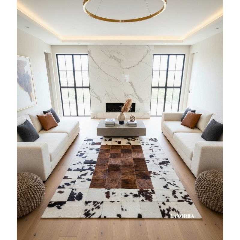 Kahverengi-Beyaz Renk Dana Derisi Patchwork Halı LNRPW00004
