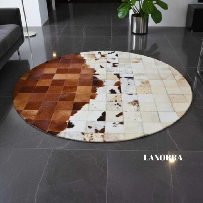 Puantiyeli Kahverengi Tonları Yuvarlak Dana Derisi Patchwork Halı LNRYH000014 4.990,00 ₺ – 19.960,00 ₺