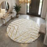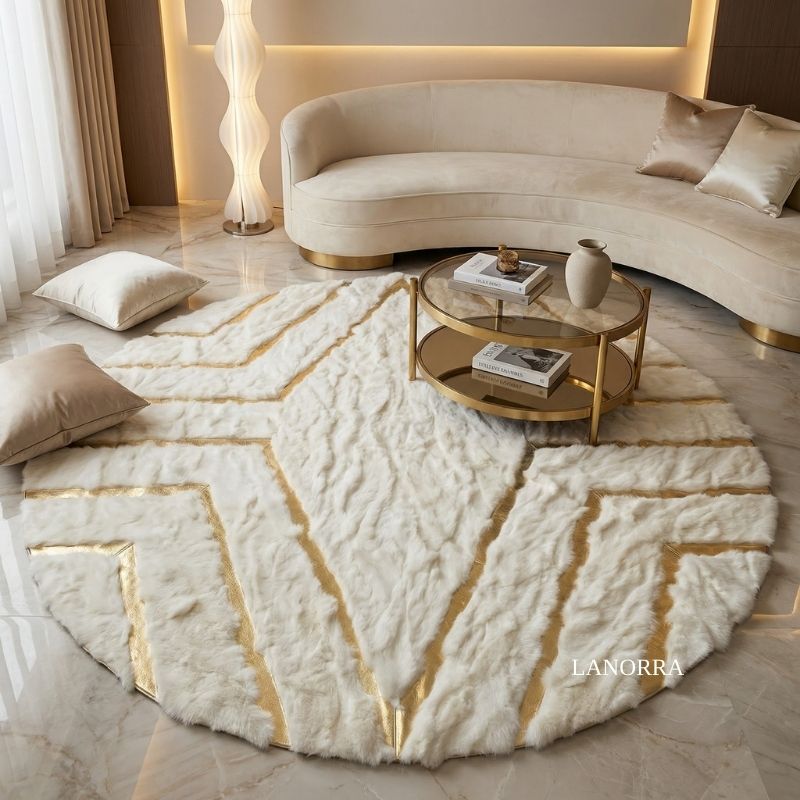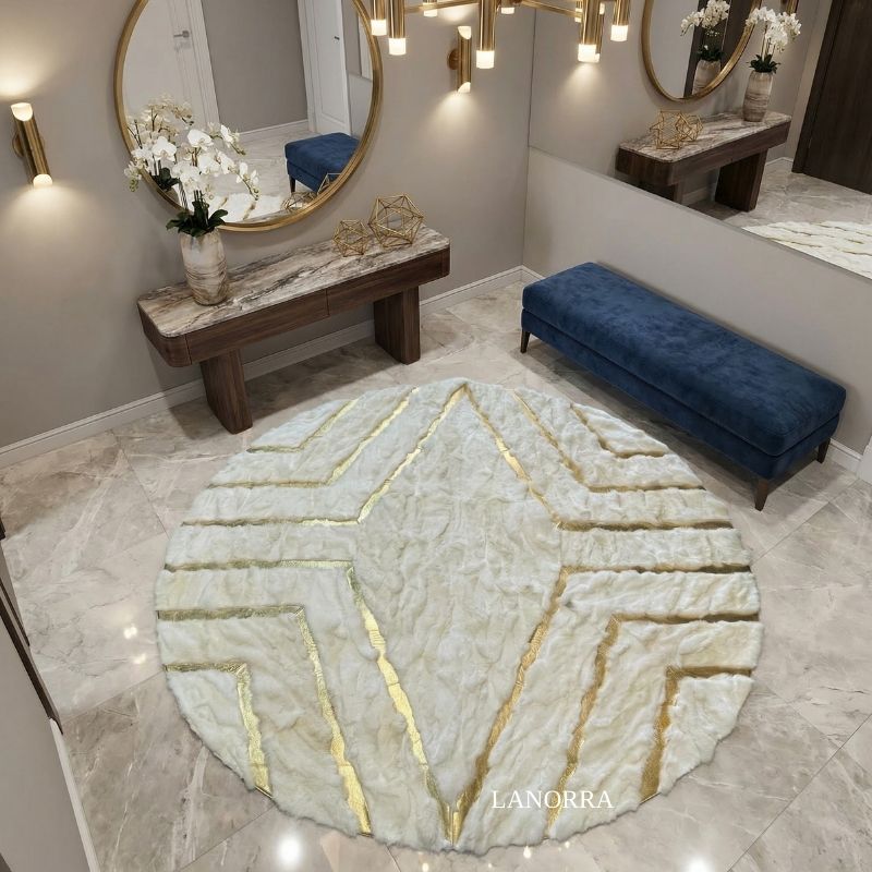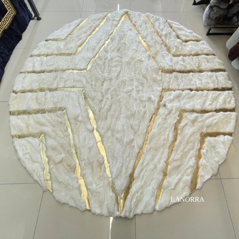 Natürel Beyaz Gold Bordürlü Yuvarlak Rex Tavşan Kürk Halı LNRYH01421