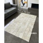 Deri Bordürlü Beyaz Renk Toskana Kürk Halı LNRKH0000882