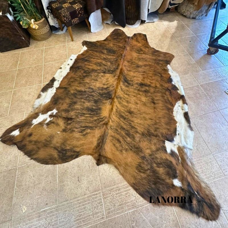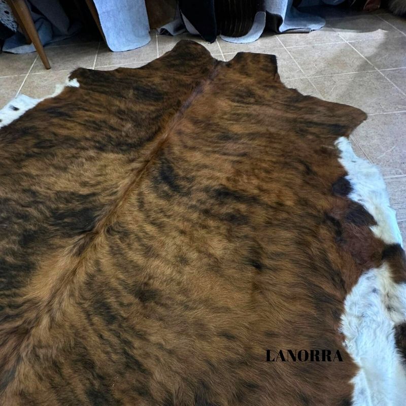Brindle Desenli Kenarları Beyaz Açık Kahverengi Renk Doğal Dana Postu 4.5-5 m2 LNRDP00005